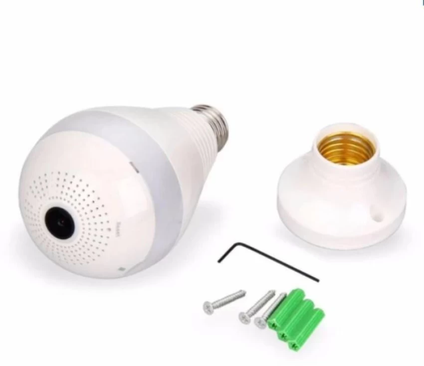𝟑𝟔𝟎 ° 𝐕𝐢𝐞𝐰𝐢𝐧𝐠 𝐀𝐧𝐠𝐥𝐞 : 360 degree fisheye lens of this bulb camera gives you an extra wide viewing angle without blind spots and also the 3D perspective which makes it the ideal bulb camera to monitor your property permanently.