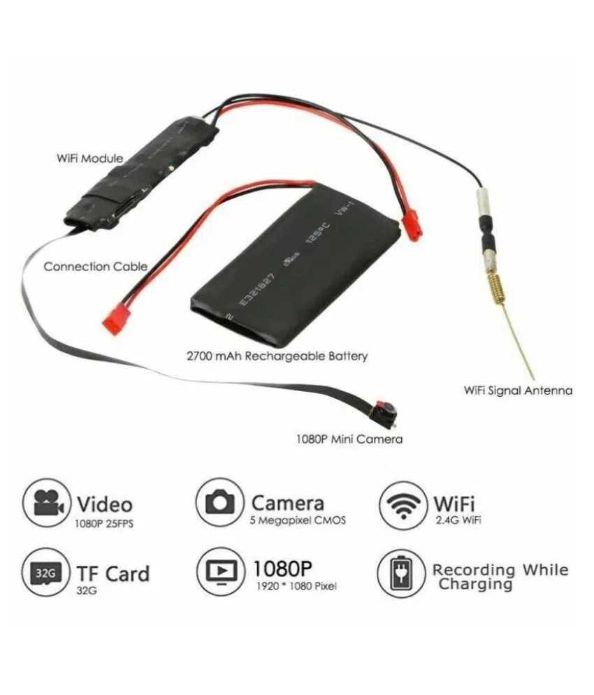 Built-in Mic for sound recording Easy to connect Wi-Fi (WiFi not supported 5G) Mobile remote viewing With wifi hotspot.No network can also be viewed by the application Support SD card recording (32GB,record about 20 days)and play back easily TF card auto cycling video Motion detection: send email message,recording video Connect to the power or power bank ,Suitable for long-term recording.