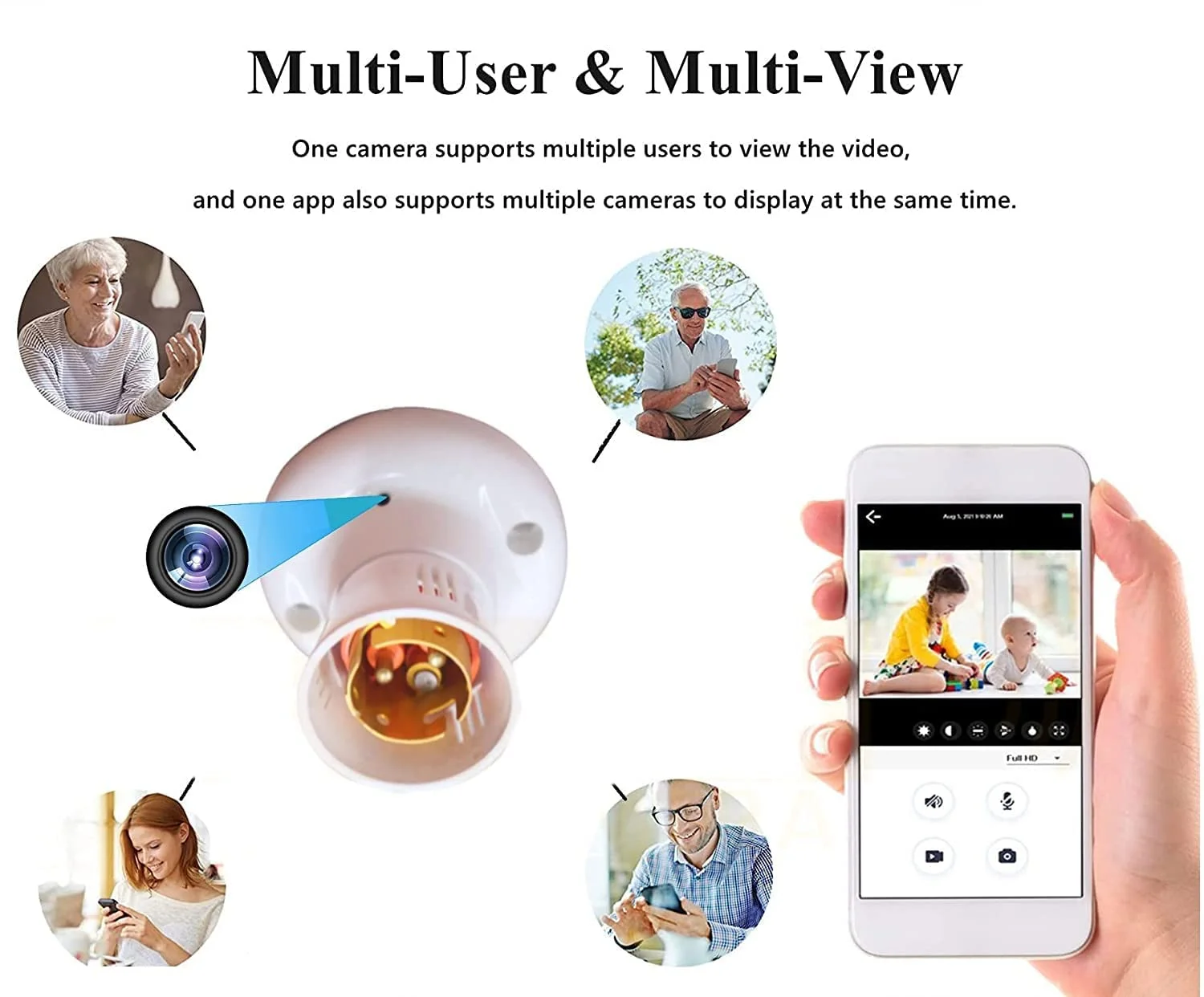 Small WiFi Bulb Holder 4K HD Camera Audio Video Recorder with Day Vision Features (Bulb Holder Camera)